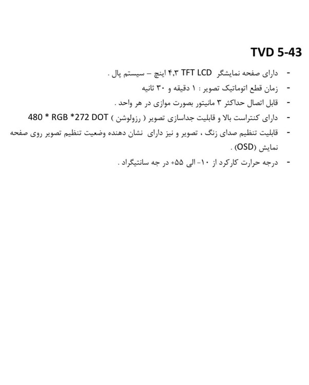 دارای صفحه نمایشگر TFT LCD 4.3اینچ – سیستم پال .